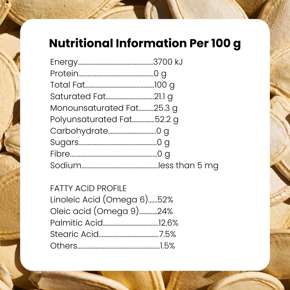 It is highly regarded as a nutritional oil, providing a high Essential Fatty Acid (EFA) content of Linoleic Acid (Omega 6, LA) and Oleic Acid (Omega 9) required for healthy function of the mind and body.